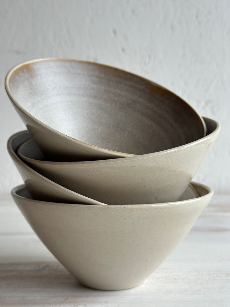 Céramiste tourneuse, je travaille essentiellement le grès, dans une approche brute et minimaliste.